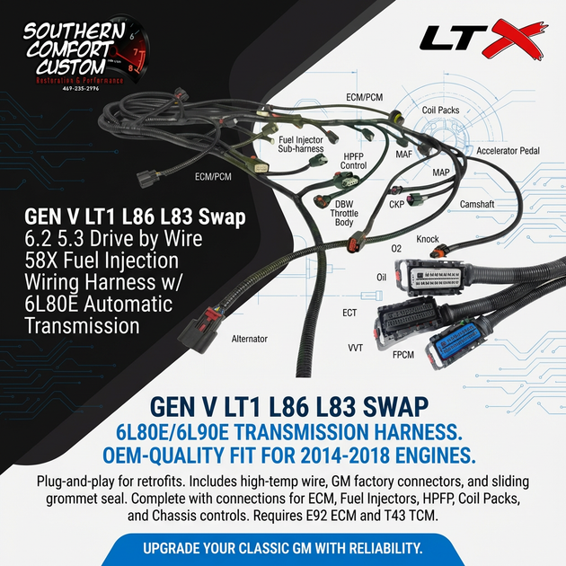 GEN V LT1 L86 L83 Swap 6.2 5.3 Drive by Wire 58X Fuel Injection Wiring Harness w/ 6L80E Automatic Transmission