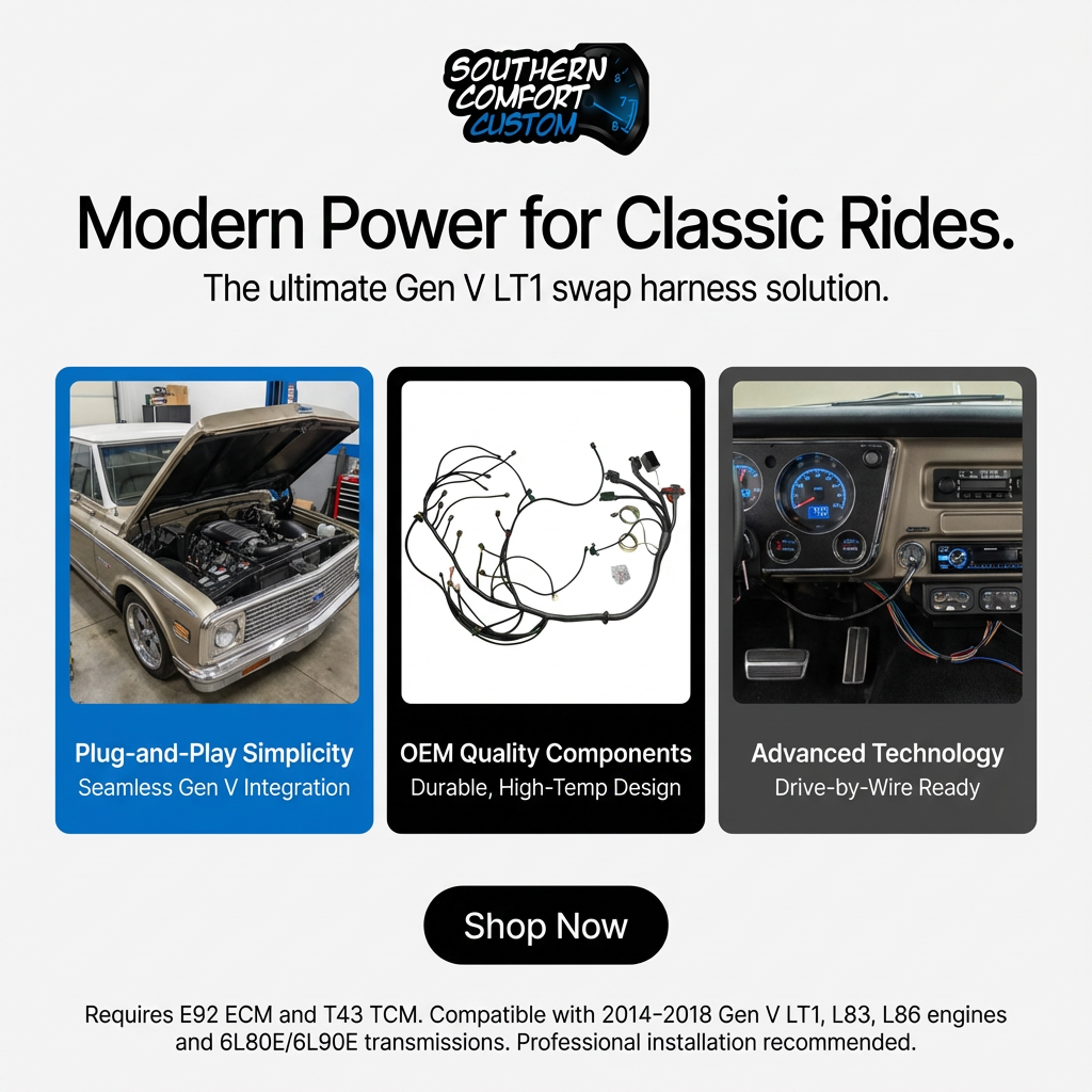 A standalone harness for a Gen V LT1 engine swap simplifies the entire process by providing a clean, plug-and-play wiring solution that eliminates the need for the original vehicle’s complex electronics and modules. Instead of dealing with unnecessary wiring for things like airbags, body controls, and anti-theft systems, the harness includes only what’s required to run the engine, making installation faster, cleaner, and more reliable. It also works seamlessly with factory or aftermarket ECUs from companies like Holley or AEM, allowing the engine to operate independently in almost any chassis while making troubleshooting and future upgrades much easier.